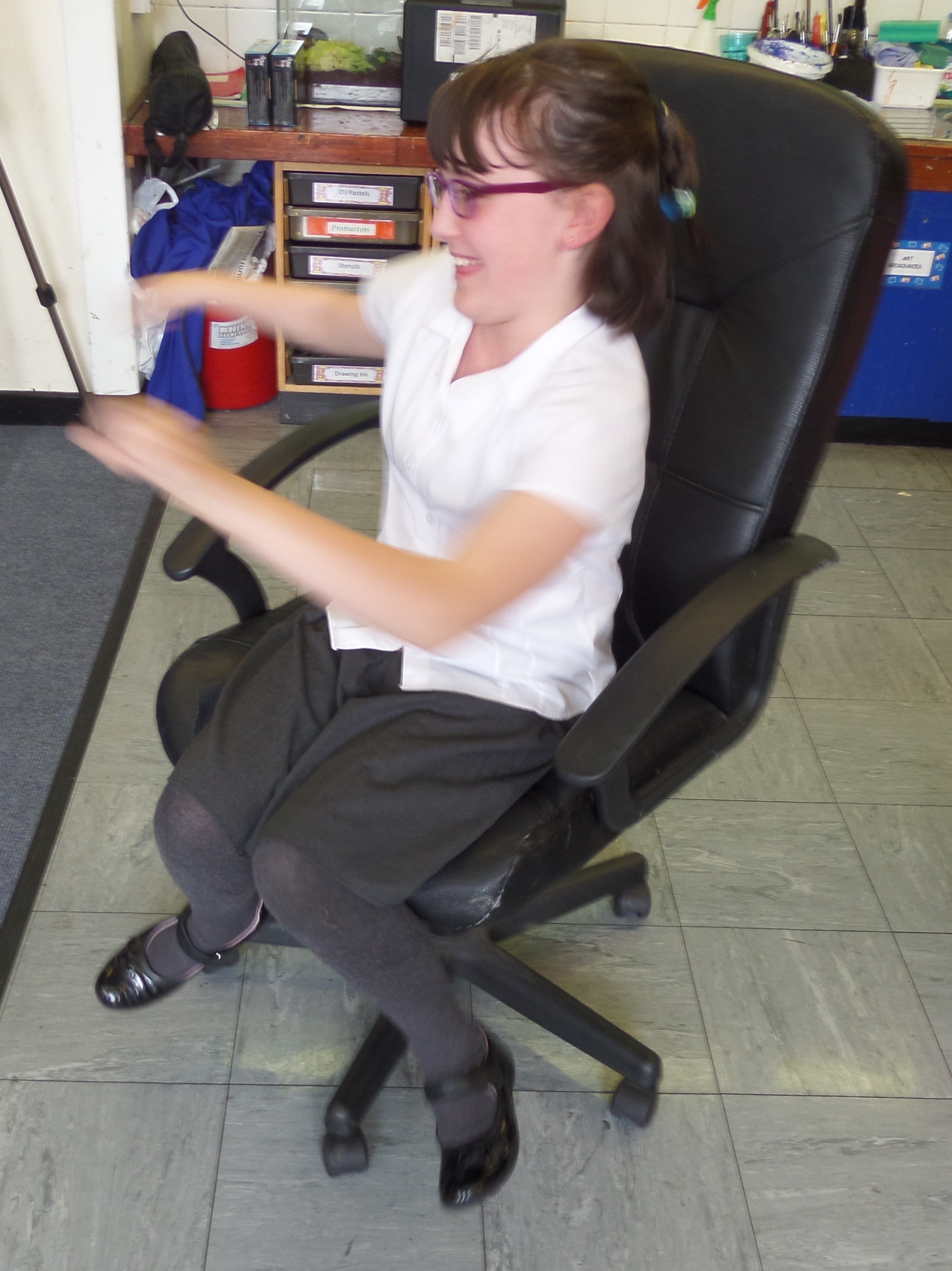 On Monday we all tried spinning on a chair with wheels without help. It is REALLY difficult on your own because you need somebody or something to push or pull onto because you cannot move all by yourself. We did this because we wanted to see how gravity works. Gravity was discovered by Sir Isaac Newton nearly three centuries ago.  If you tried to spin on a chair in space, you would just keep spinning round and round and couldn’t stop but on Earth it is hard to move and when you do you can put your feet down to stop.