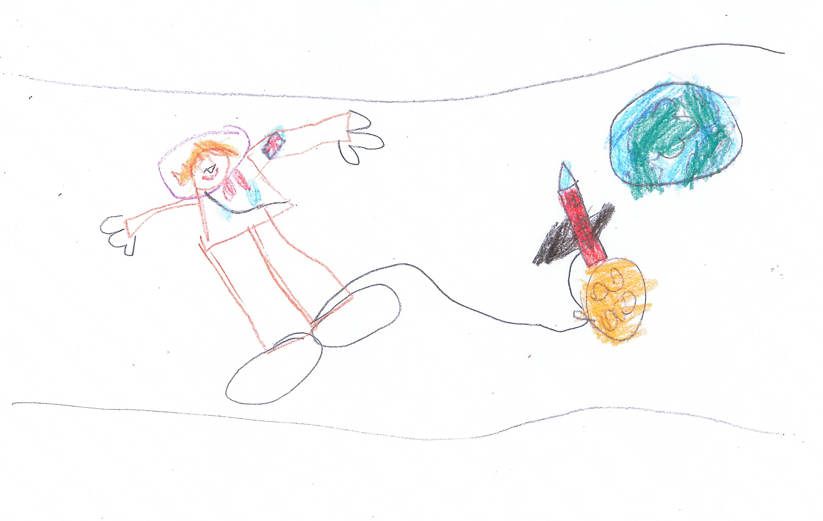 This picture shows Tim tethered to his space rocket!